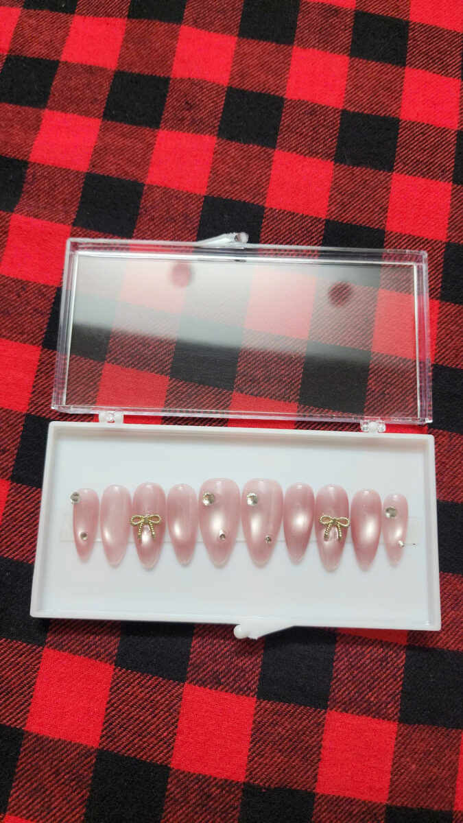 Pink Pearl Gold Bow Press Nails